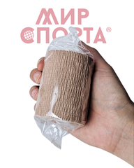 Легкий тейп, прилипающий только к самому себе. Не повреждает защитные прокладки и одежду. Может использоваться в качестве жгута для перетягивания ран с целью остановки кровотечения.Цвет: Бежевый 130613 7,5 см х 4,5 м